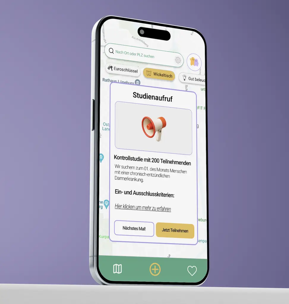 Mit unserem WC-Finder erreicht Ihr täglich mehrere hundert Menschen. Unsere stärksten Nutzergruppen: Reizdarm, chronische Darmerkrankungen und Menschen mit Behinderungen. Auch Eltern, Älterwerdende sowie Du und ich gehören zu unseren Kunden:innen.